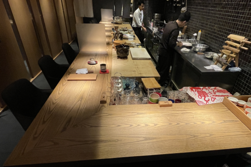 美しい杢目が印象的な和食の名店